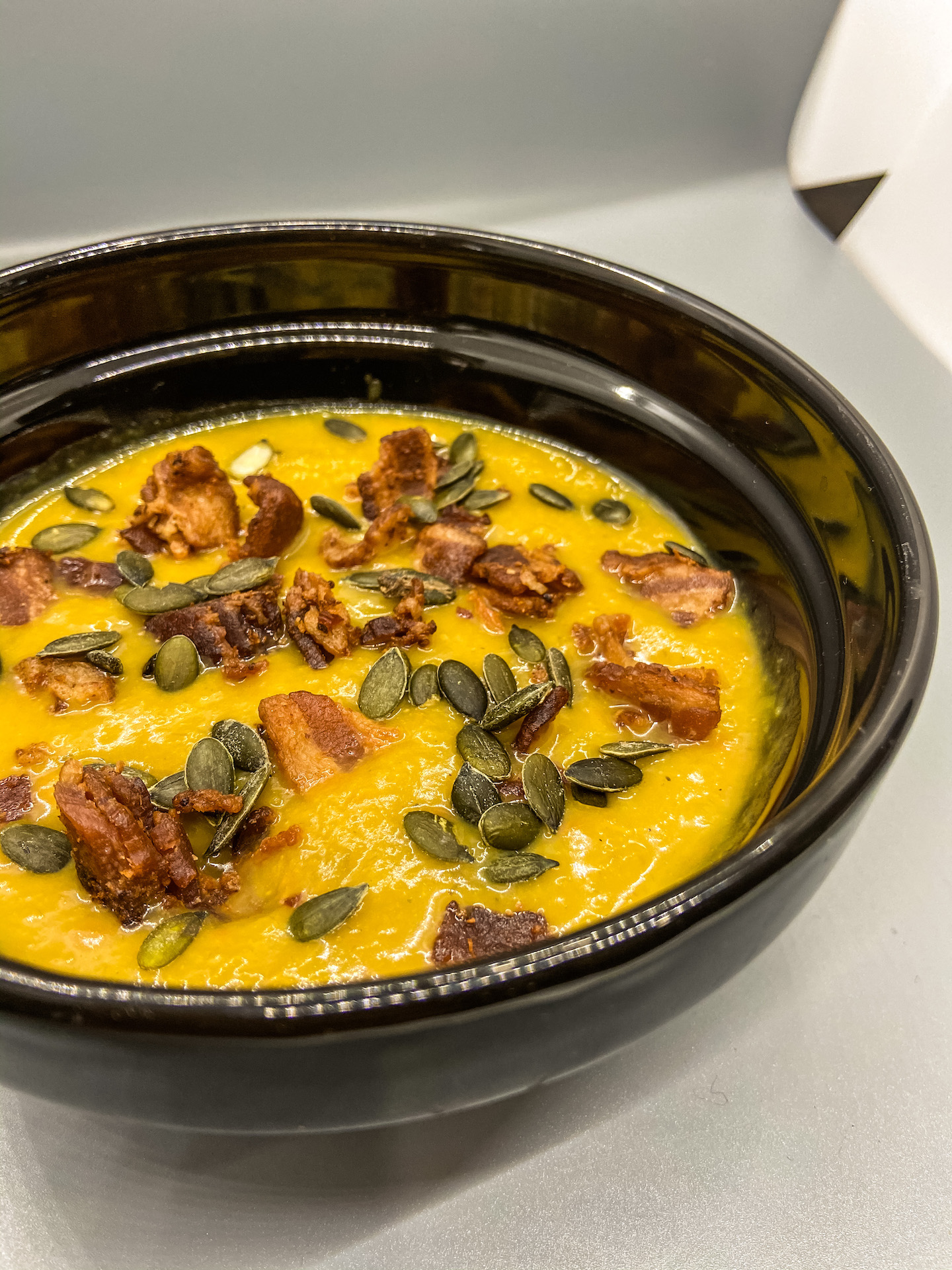 Butternut Squash Soup with Bacon and Pepitas