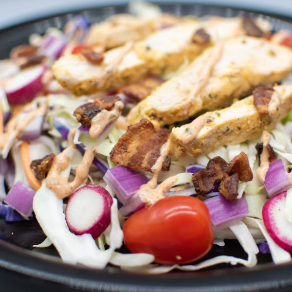 • Chicken, Bacon, Ranch Salad on Shredded Slaw